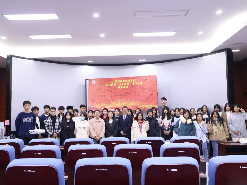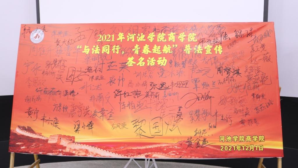 在讲座中,韦书觉强调了学法的重要性,并向同学们生动有趣的讲解了我们生活中必备的法律知识并与我院同学们一起诵读《中华人民共和国宪法》条款。互动环节中,我院同学们积极的回答问题,并提出自己的疑问,讲座气氛轻松愉快。讲座后,韦书觉同参会同学们一起进行了普法宣传的签名活动。