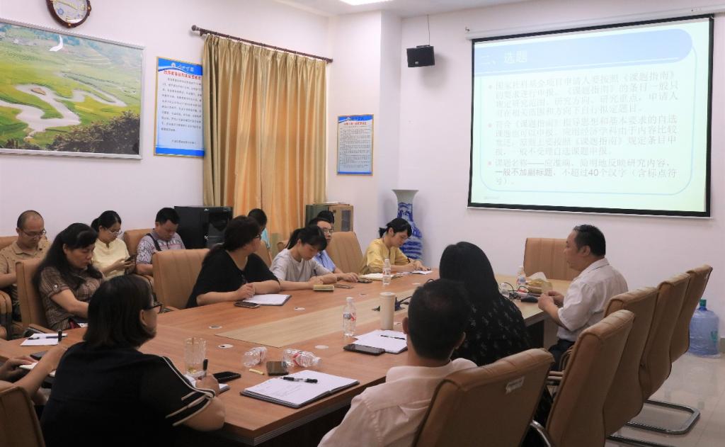 田卫民结合自身丰富的国家社科基金申报经验和评审经验,就如何选题和写好申报书进行讲解,并对申报中需要注意的其他问题进行指导。肖海燕在总结中指出,田教授的讲解丰富详实,希望大家学以致用,将国家社科基金申报工作做细、做扎实、做出新意。