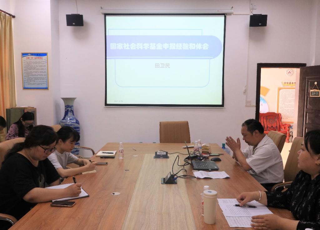 5月12日下午,广西师范大学教授、研究生导师田卫民应邀在BWIN必赢举行《国家社会科学基金申报经验和体会》学术讲座。我院部分专业教师参加,讲座由副院长肖海燕主持。