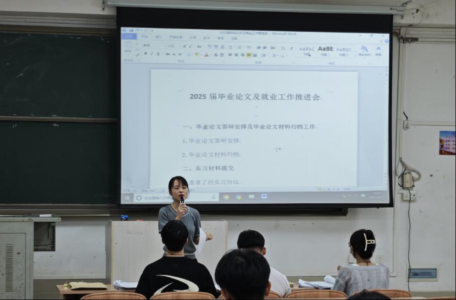 本次推进会既是毕业论文答辩工作的“发令枪”,也是就业冲刺的“加油站”。系统部署帮助学生明晰学业与职业规划的双重路径,体现了我系“以学生为中心”的育人理念。与会学生纷纷表示,将以此为契机,扎实完成学术任务,主动提升职业技能,以积极姿态迎接人生新阶段。