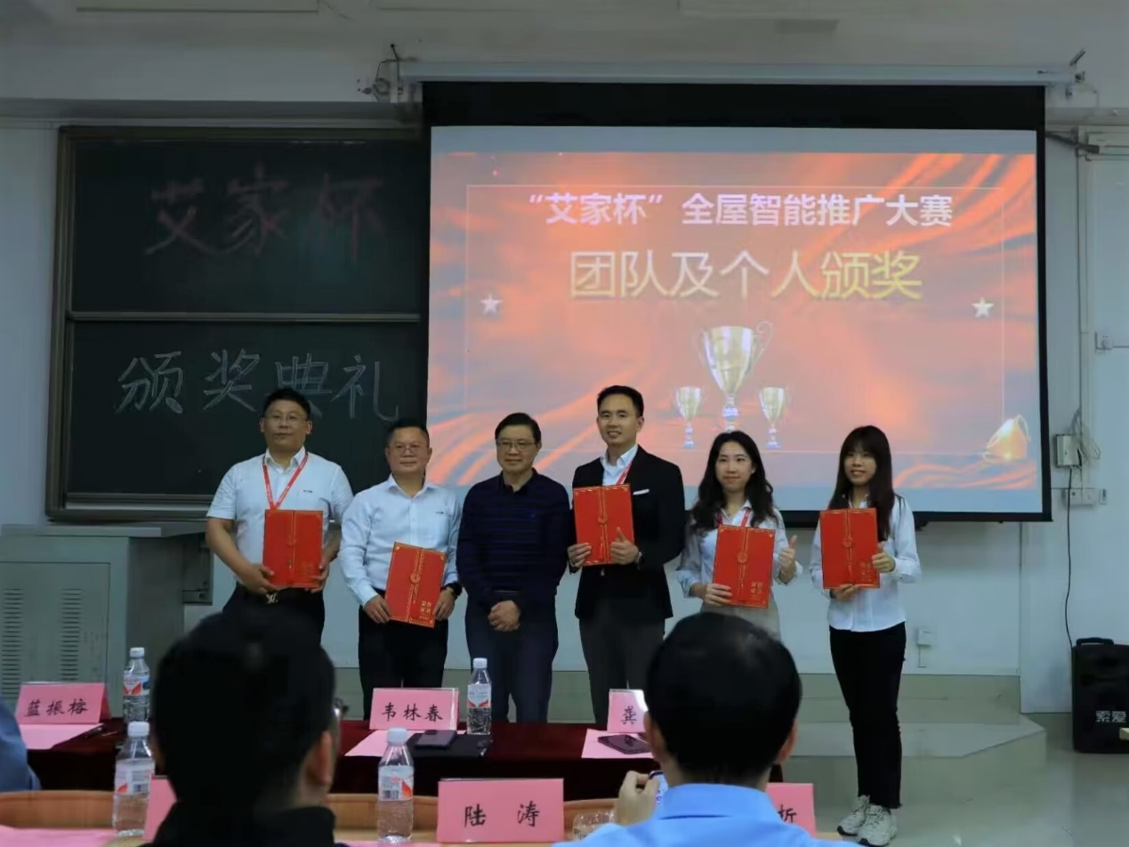 4月13日晚,BWIN必赢于弘毅楼2-205举行2023年“艾家杯”全屋智能推广大赛颁奖典礼。我院党委书记韦书觉、副书记蓝振榕,佛山市艾家电器有限公司代表龚述华、王立忠、韦林春以及我院市场营销专业教师代表、各参赛队伍代表出席仪式。