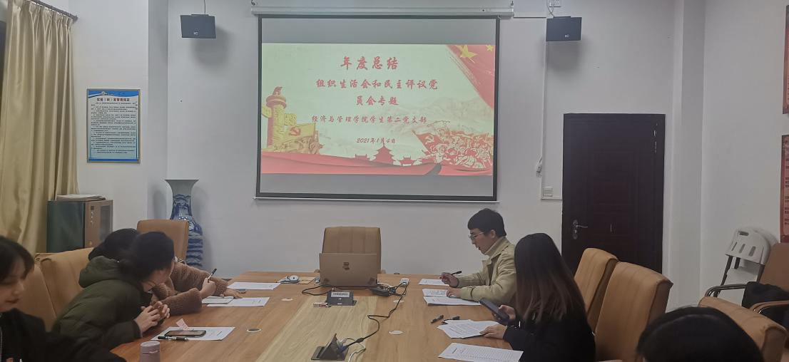 2021年1月4日晚,经管学院学生第二党支部于弘毅楼2-208会议室召开民主评议党员会暨2020年度总结会。我院学生第二支部李云涛书记,韦虹羽同志以及全体学生党员参加会议,会议由宋江涛同志主持。