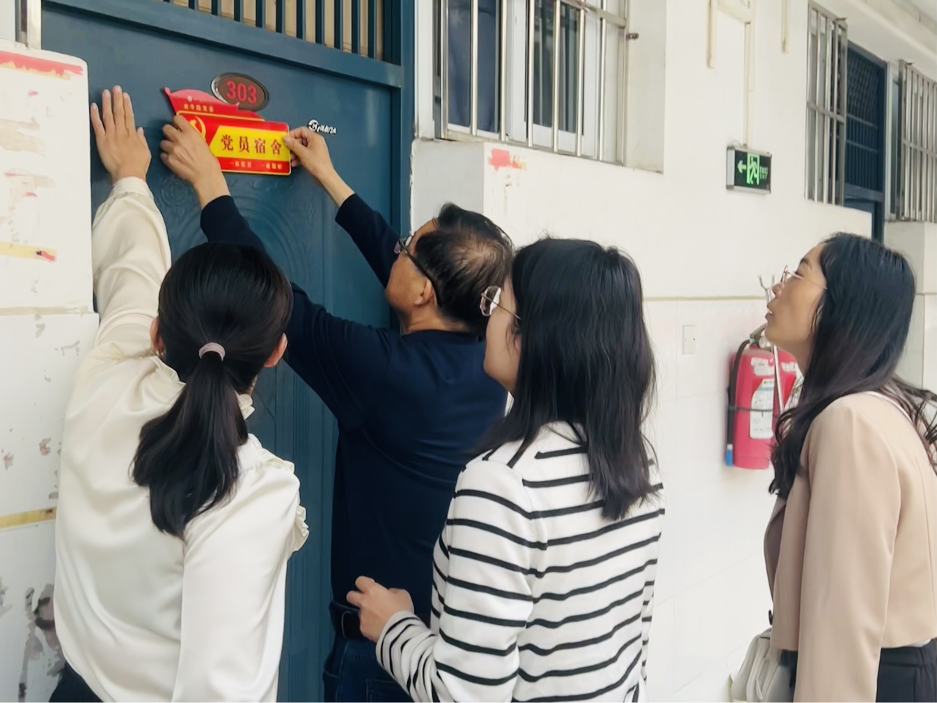 仪式结束后韦书觉一行深入学生宿舍,与学生党员携手将鲜艳的“党员宿舍”铭牌悬挂于宿舍门前,并详细询问学生们在宿舍的生活情况,嘱咐大家将宿舍营造成温馨家园。