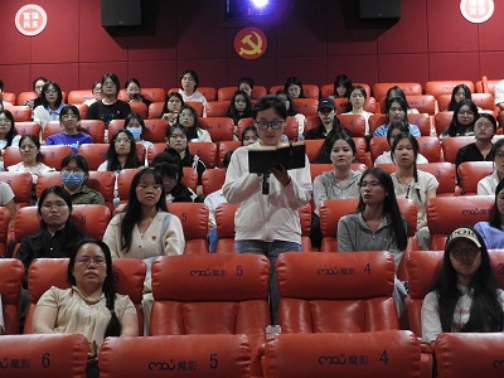 影片情节感人至深、催人泪下,英雄先烈们坚不可摧的信仰、对党和国家无限忠诚的精神深深打动了我院师生党员。在观影结束后大家纷纷分享观影感受。韦书觉从自身经历出发,运用身边事迹并结合电影内容,告诫同学们要珍惜现在的生活,更要以身作则,不忘初心,牢记党的使命。