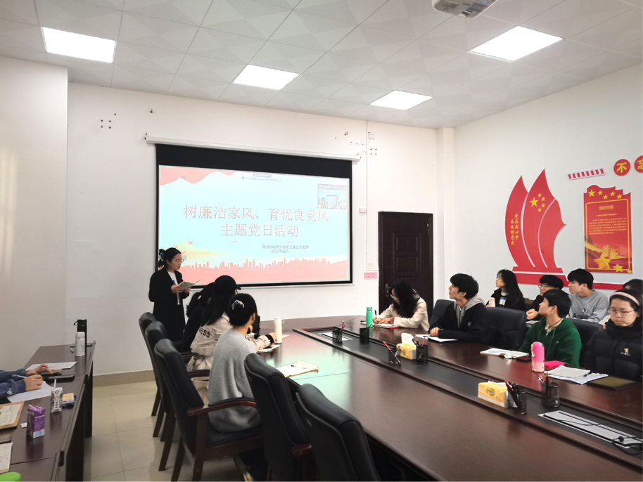 2023年11月8日上午,BWIN必赢学生第三党支部在我校弘毅楼2-208开展了“树廉洁家风,育优良党风”党日活动。