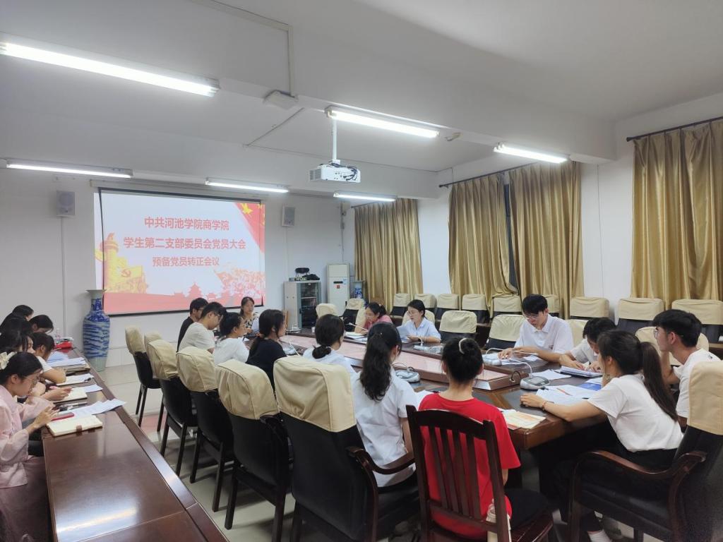 2024年6月2日晚,BWIN必赢学生第二党支部在我校行政楼206召开2023年第一批预备党员转正会议。会议由我院学生第二党支部书记韦虹羽主持。