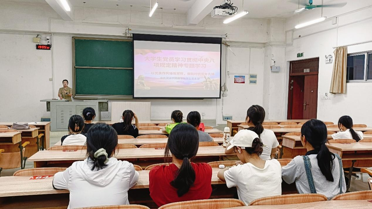 韦虹羽带领全体同志认真学习《习近平关于加强党的作风建设论述摘编》相关内容,倡导以学风建设为根基,传承清正廉洁、勤俭节约的优良传统,让奋斗精神成为青春底色。我院学生党员张郝帅在考研经验分享环节中围绕考研内容、备考规划等方面进行详细讲解。他建议同学们制定科学的复习计划,注重真题训练与阶段性复盘,保持积极心态,合理应对备考压力。