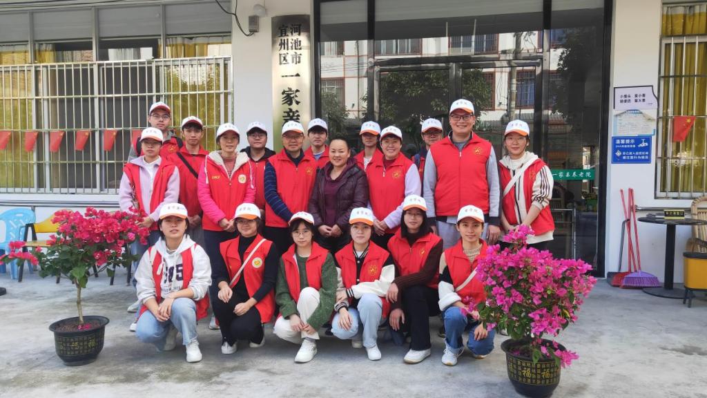 11月19日上午,BWIN必赢党委走进宜州区刘三姐镇一家亲敬老院开展“关爱老人 温暖社会”志愿服务活动。BWIN必赢党委书记韦书觉,学校工会(常务)副主席蓝色,BWIN必赢党委副书记蓝振榕、专职组织员韦燕青以及各学生支部书记、学生支部志愿者共同参加此次活动。