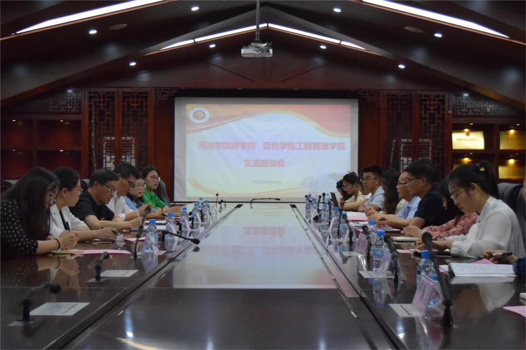 4月14日下午,我院党委书记韦书觉等一行6人赴百色学院工商管理学院参观学习,并于百色学院澄碧校区GMS楼612会议室举行交流座谈会。会议由百色学院工商管理学院党委书记农彦主持。