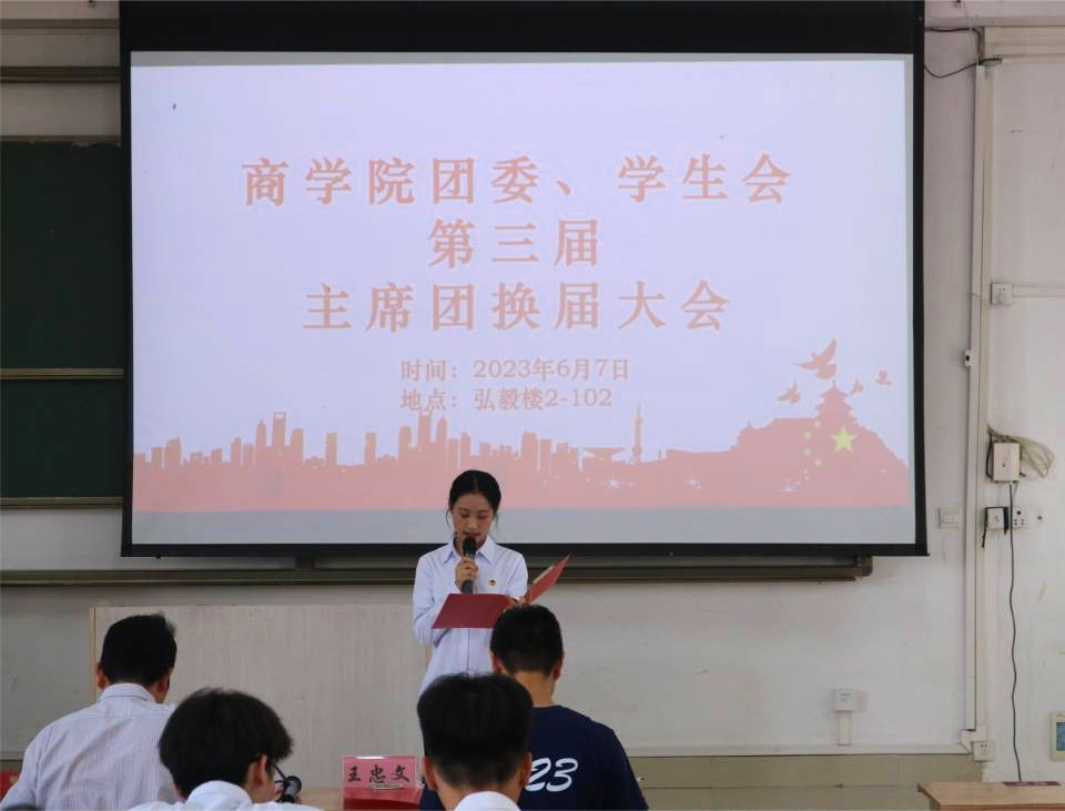 6月7日下午,BWIN必赢于弘毅楼2-102举行第三届团委、学生会换届选举大会。我院副党委书记蓝振榕,团委代理书记、辅导员王忠文和辅导员刘晓晨出席本次会议,校团委、学生会、社团团工委、志联及各二级学院代表、各班级代表、团委、学生会工作人员参加本次会议。会议由我院团委学生会成员韦鲜梅主持。