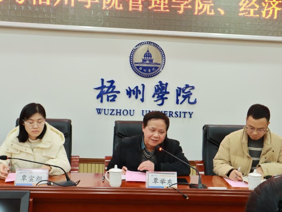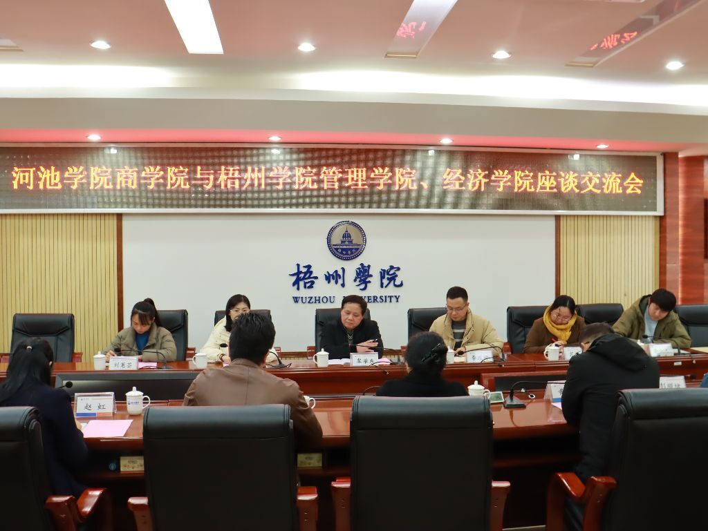 首先,由梧州学院经济学院杨诚院长、管理学院张堂云院长介绍学院学科专业建设、实训室建设、学生实习实践工作基本情况,分享了专业建设、校企合作、产教融合、教学创新、考研动员、学生学科竞赛参与及实训室建设等宝贵经验。随后,我院各系主任与梧州学院经济学院、管理学院各系负责人就本专业发展过程中面临的问题进行交流讨论,为我院专业人才培养方案专业课程设计提供了良好经验借鉴。