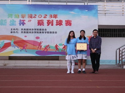 在决赛场上,我院女足配合有张有弛,场外观众纷纷为她们欢呼喝彩。经过激烈的角逐,我院女足获得本次比赛亚军。韦书觉为我院女足运动员们颁奖并合影留念。
