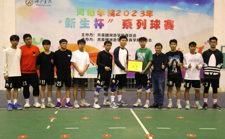 10月22日晚,我校“新生杯”篮球冠亚军争夺赛于东区校友球馆举行。本次比赛我院女篮男篮队伍对阵体育学院队伍,我院党委书记韦书觉,团委书记王忠文和学生志愿者们到场为运动员们加油。