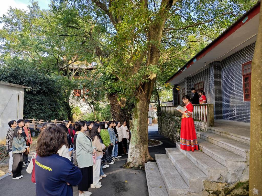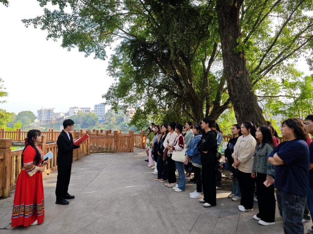 新生们在宣讲团的带领下有序参观了校史馆、冠英亭、冠英阁、东西凡一平文学馆、龙江月夜、独竹漂训练基地等多个校园文化景点并认真聆听景点文化介绍。