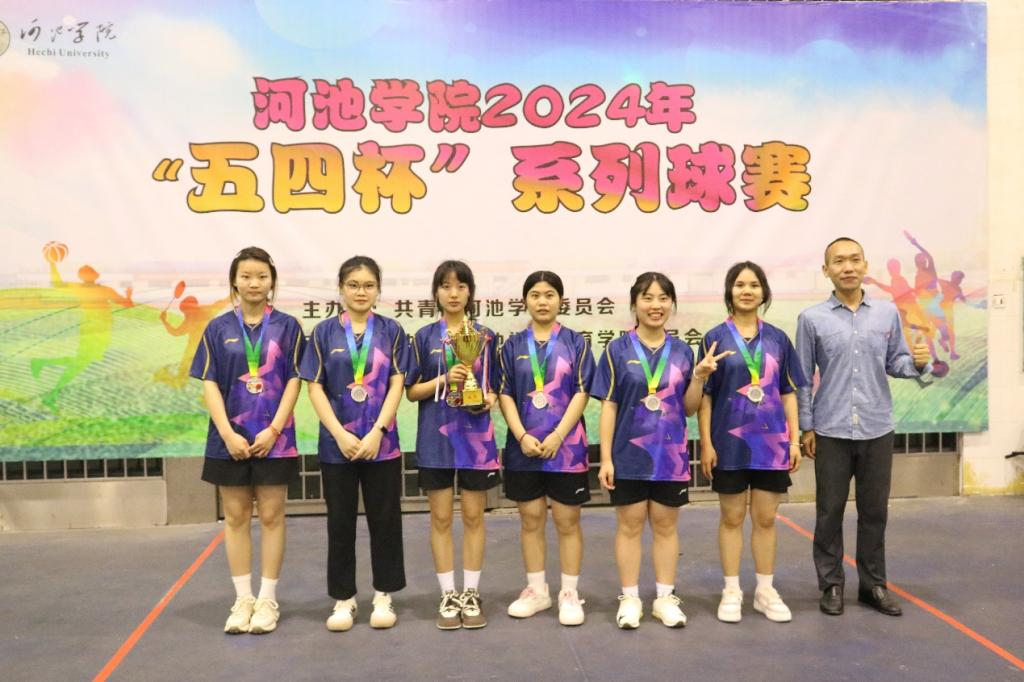 4月27日下午,河池学院“五四杯”乒乓球女乒冠军争夺赛于东区校友球馆进行。我院女子组在此次“五四杯”乒乓球赛中荣获亚军。