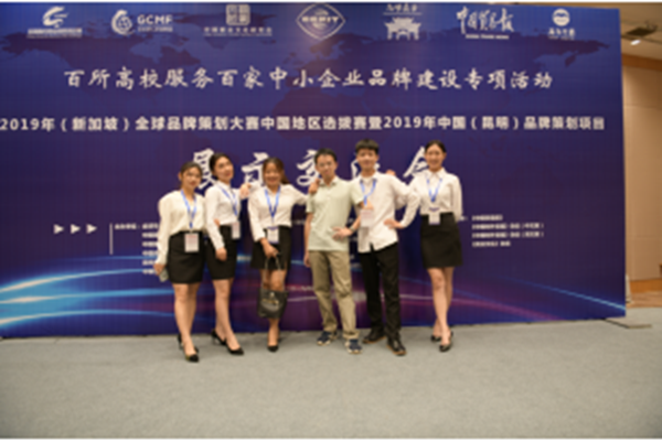 2019年4月28日,由我校BWIN必赢梁海东和李冬哲两位老师带队,前往昆明参加2019年全球(新加坡)品牌策划大赛中国地区选拔赛二等奖,我校荣获最佳院校组织奖,合作企业获得优秀企业及最具社会责任奖。此次比赛共摘8个奖项,为市营有史以来获奖最多的一次。本次大赛由全球华人营销联盟(GCMF)、中国国际贸易促进委员会、中国国际商会、昆明市商务局和中国贸易报社等主办。大赛举办地点为昆明市云安会都酒店。