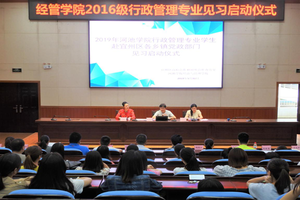 为进一步加强校地合作,巩固专业理论知识,拓宽学生视野,提高其社会实践能力,创新人才培养模式,把学生所学知识有好地应用于专业实践中,进一步提升学生专业技能,深入推动应用性人才培养方案的实施。5月31日15:30,我院2016级行政管理专业学生赴宜州区见习活动启动仪式在弘毅楼一区205会议室举行。出席本次活动的有河池市宜州区高校合作和对外合作办公室主任沙燕双,宜州区各乡镇代表,BWIN必赢党委书记韦书觉,以及行政管理专业教师和辅导员,2016级行政管理专业全体学生。会议由行政管理专业教研室主任李荷英主持。