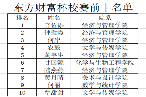 参赛选手来自各院,学生参与度较高,本次东方财富杯大赛提供河池学院学子一个金融知识交流学习的机会,真实感受金融市场的收益性和风险性,实现理论与实践的有效的结合和互动。