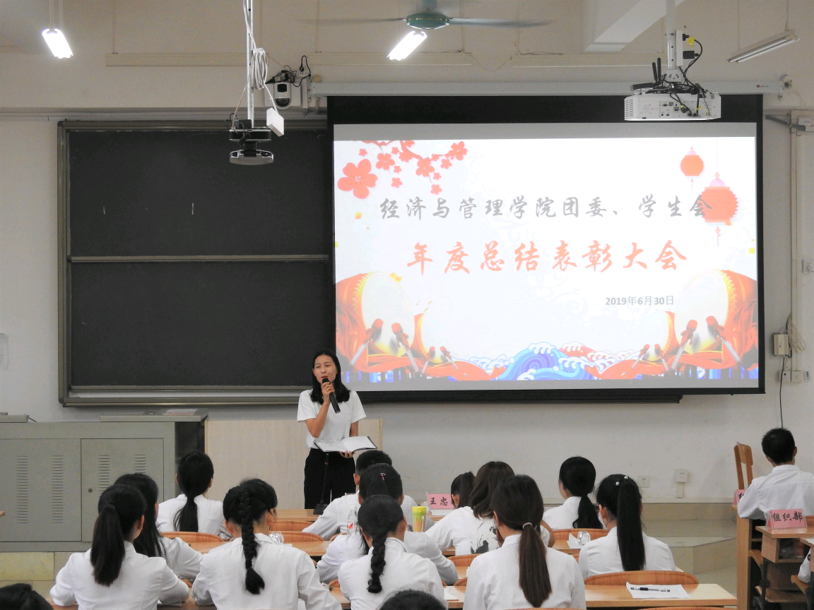 为了进一步推进团委、学生会的工作进程,加强学生干部的工作能力,发扬优良的工作作风,总结过去一年的工作成果,6月30日上午,我院于弘毅楼2-205教室召开第七届团委、学生会年度总结表彰大会,出席本次会议的有我院党委副书记龚丁海、辅导员王忠文,以及16届主席团成员、17、18届团委、学生会全体成员。