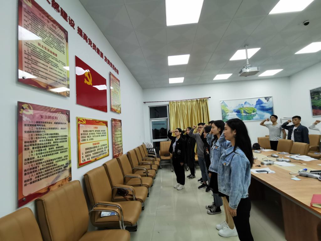 最后,预备党员在雷小莲同志的带领下庄严宣誓。大会的成功召开,为支部注入了新血液,壮大了经管学院学生第二党支部的党员力量,在党组织的带领下,全体党员同志将坚定自身立场,坚持用自身的实践行动为党奉献!为共产主义事业奋斗终生!