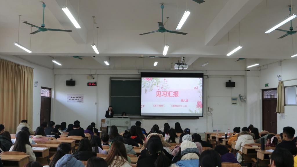 12月28日下午,17级人力资源管理专业学生见习汇报于弘毅楼2区105教室召开,出席本次汇报会的有公共管理系主任刘智以及17级、18级人力资源管理专业全体同学,本次汇报会由17级人力资源管理班班长黄艳清主持。