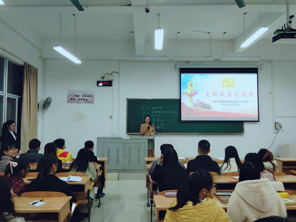 为进一步加强支部成员的沟通,提高支部的凝聚力和战斗力。2019年12月28日晚,经管学院学生第一党支部在弘毅楼3-302教室开展了支部成员交流会。学生第一党支部书记方容兰、学生第一党支部全体党员、积极分子参与了此次会议。会议由邵金艳同志主持召开。