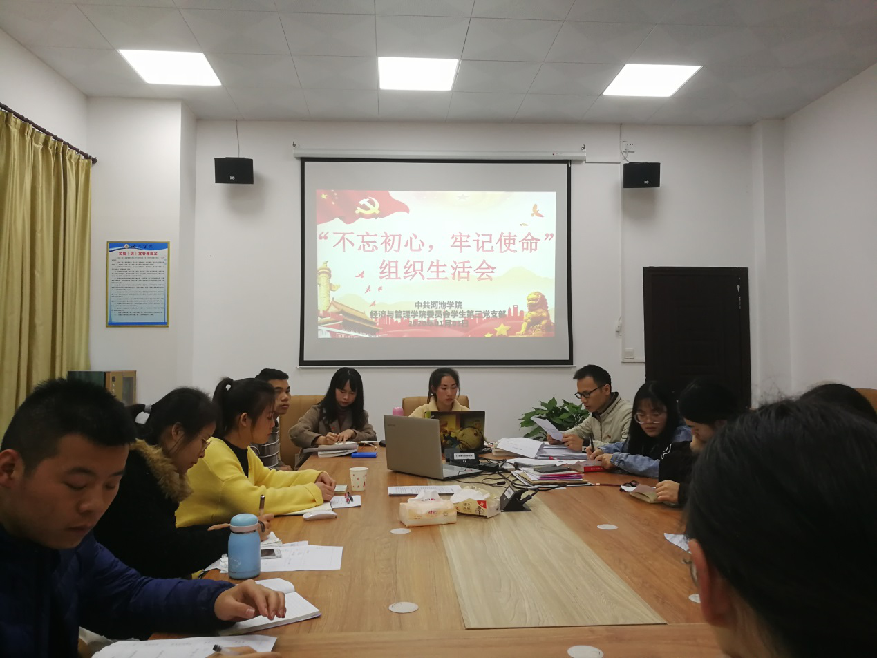 BWIN必赢学生第三党支部于2020年1月3日晚在弘毅楼2-208教室开展了以“不忘初心、牢记使命”为主题的组织生活会议和民主评议会议,本次会议由支部书记黄挺龙和27名党员同志参加。