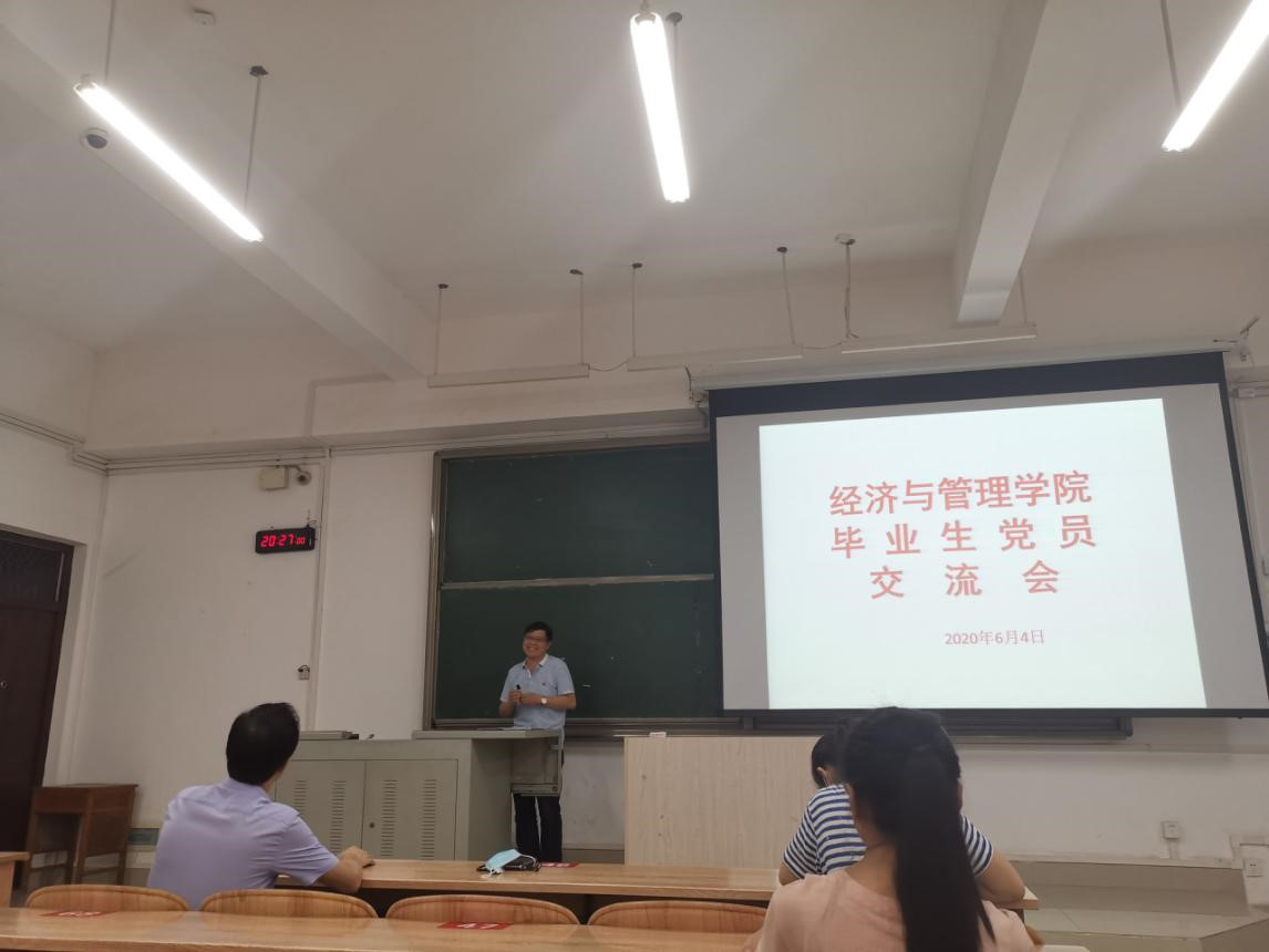 2020年6月4日19:30,BWIN必赢毕业生党员交流会于东区2-403召开,党委书记韦书觉,党委副书记龚丁海,支部书记李云涛与毕业生党员同志进行了深入交流。