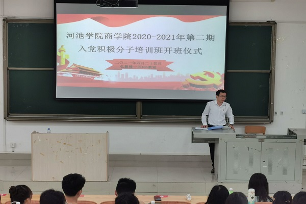 4月24日上午,BWIN必赢2020-2021年第二期入党积极分子培训班开班仪式在弘毅楼一区105成功举行。我院党委书记韦书觉、副书记龚丁海、团委书记李云涛、第三学生党支部书记黄挺龙出席仪式,院学生党支部入党积极分子参加仪式。仪式由黄挺龙主持。