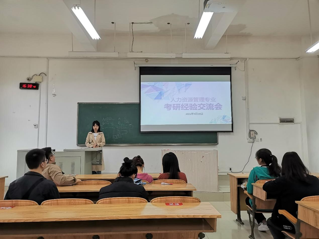 交流会上,被广西民族大学拟录取的廖晓霞同学作为17级考研学生代表为2022届备考同学传授经验。她从考研备考技巧、导师选择经验等方面为学生全方位地进行了讲解,分析了疫情、社会经济发展状况等对考研难度的影响,使学生对当前考研形势有了较为直观地了解,对如何选择考研学校、专业等有了较为清晰地认识,为学生做好考研规划提供了坚实的基础。
