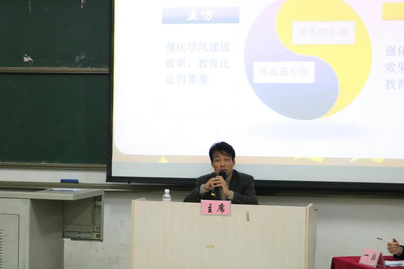 活动过程中,六组辩手围绕“青年成长的动力主要来自责任还是来自梦想”“说得好不如做得好还是做得好不如说得好”“强化学风建设效果,教育比处罚重要还是处罚比教育重要”展开辩论。正反双方思路清晰、观点明确,全程氛围热烈,精彩纷呈。经过激烈的角逐,最终庞采明小组获得一等奖,何光程、韦芊芊小组获得二等奖、卢再娜、巫雪婷和邓雨茹小组获得三等奖。赛后各位评委点评认真细致,深化了辩题,使同学们收获良多。