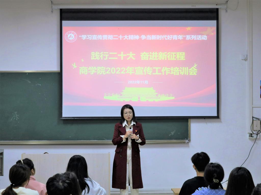 11月23日晚,BWIN必赢于弘毅楼3-302举行“学习宣传贯彻二十大精神·争当新时代好青年”系列活动之宣传工作培训会。我院学生第二党支部书记、易班指导老师韦虹羽担任主讲人,我院教师党员代表刘晓晨、团委学生会宣传部成员、易班新闻部成员、各社团宣传部成员及各班宣传委员参加。