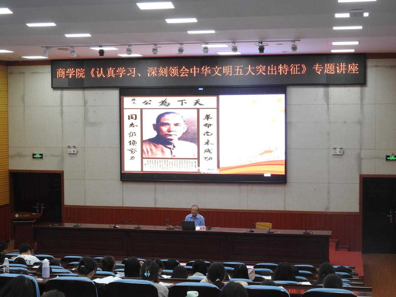 10月28日上午9时,银建军教授在弘毅楼1-205报告厅,为我院入党申请人、入党积极分子以及学生党员作题为《认真学习、深刻领会中华文明五大突出特征》的专题讲座。讲座由我院专职组织员韦燕青主持。