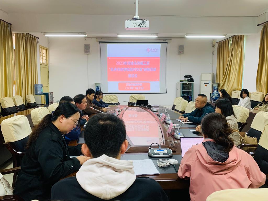 11月30日下午,BWIN必赢于行政楼206召开2023年河池市劳模工匠“走进河池学院结对交流”研修座谈会。本次活动特邀河池市劳模代表邓康和韦尧佐到场与学院师生进行交流。我院党委书记韦书觉、院长覃举东、青年教师代表及各班级学生代表参加本次会议。会议由覃举东主持。