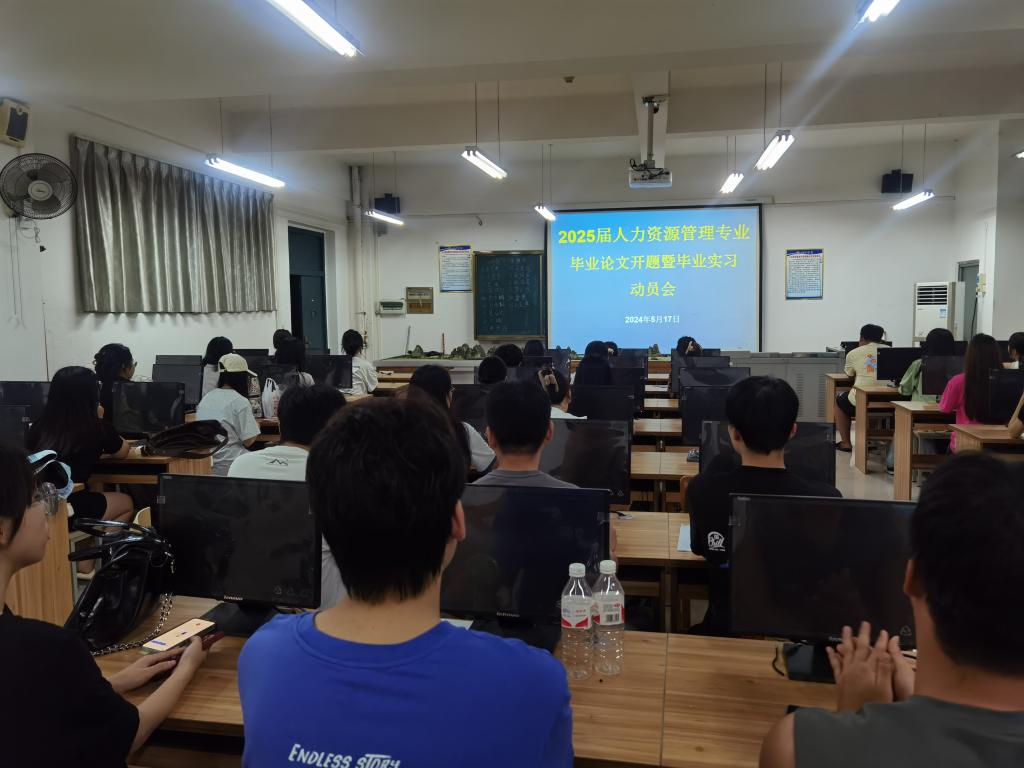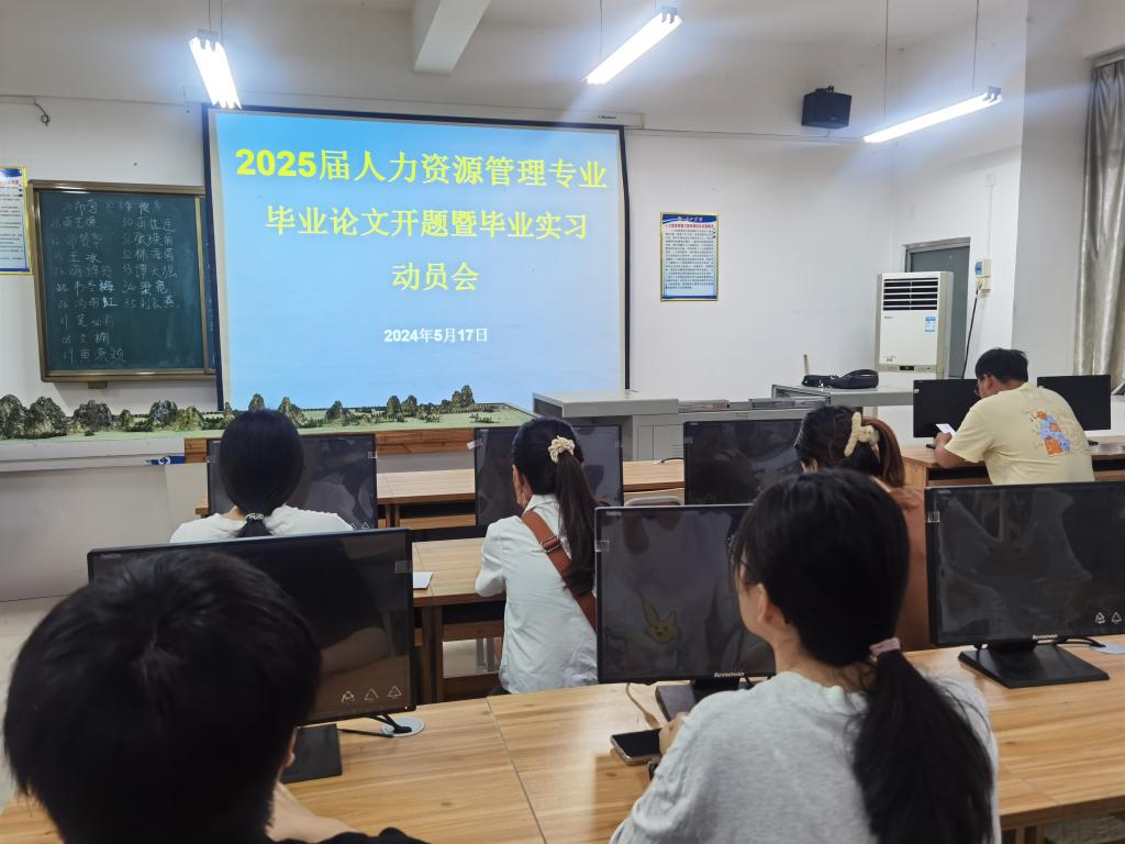 5月17日晚,BWIN必赢于逸夫楼604开展了2025届人力资源管理专业毕业论文开题暨毕业实习动员会。这次会议由BWIN必赢人力资源管理系主任刘智老师担任主讲人。