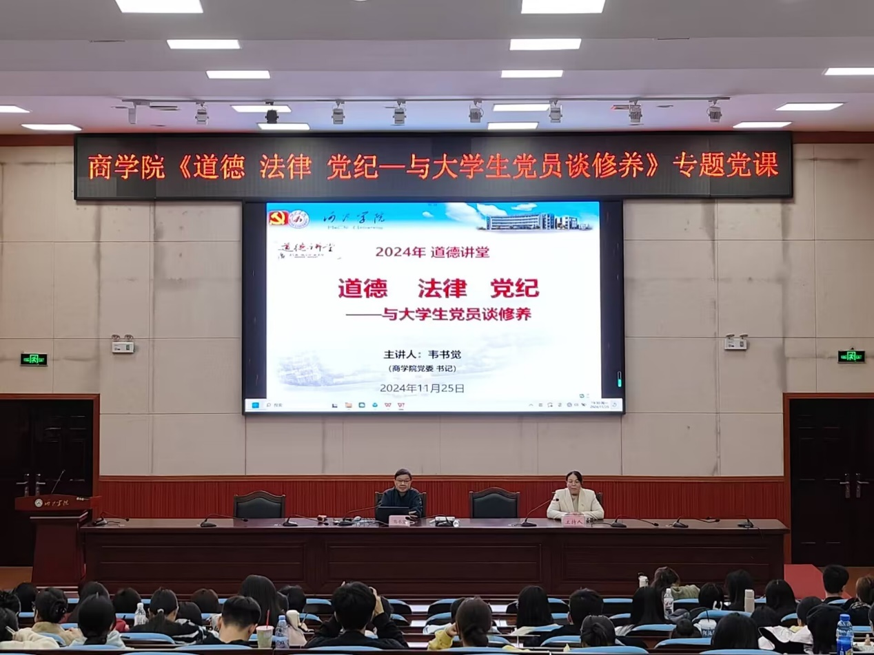 韦书觉以《道德法律党纪—与大学生党员谈修养》为题,从“为什么要谈道德修养?”、“为什么要谈法律修养?”、“为什么要谈党纪修养?”三个方面带来了一场生动精彩的专题讲座,引导广大师生党员讲党性、守党规、严党纪、强化学生党员的信仰、信念和信心。