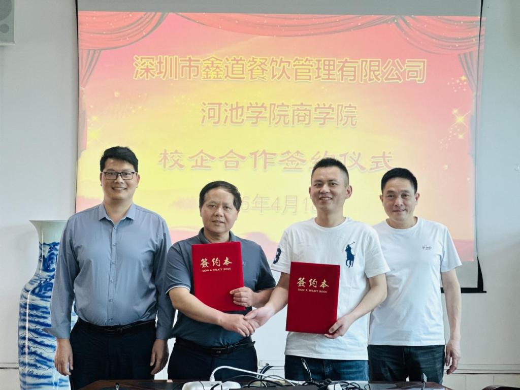 4月18日上午,深圳市鑫道餐饮有限公司执行总裁韦良成一行2人来我院洽谈校企合作事宜。我院院长覃举东、党委副书记蓝振榕、办公室主任刘红领、贸易经济系专任教师李政祥参加会议。会议由蓝振榕主持。