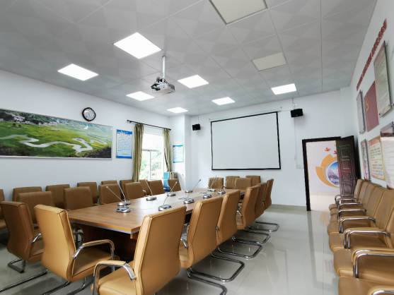 旅游商务谈判实训室建成于2016年6月,使用面积为40平方米,总投资28万元,有多媒体投影机、电动幕布、多媒体教学系统、高集成数字会议系统、桌面式讨论主席单元1台及8台桌面式讨论表决代表单元,有会议音频处理器、会议音箱,专业功放,调音台,会议机柜等设备,再加上主会议桌及50张会议椅子,是商务谈判教学和会议谈判专业教学的实训场地。